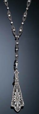 | A diamond necklace of scrolling designs, which can easily be converted for wear as a tiara. |