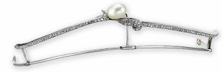 | A large pearl and diamond necklace. It probably came with a matching tiara, but the design itself could easily be converted into wear as a large diadem. |