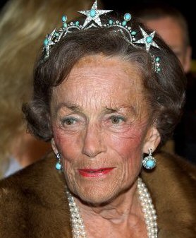 | A photograph of, I believe, Nancy Astor (correct me if I'm wrong), wearing a beautiful Turquoise and diamond tiara with star designs. |